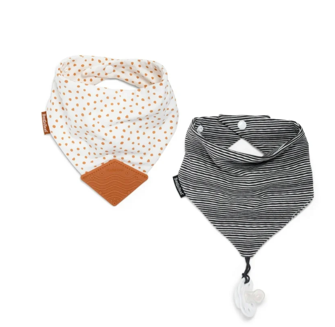 Seeing the success of their pacifier clips, Booginhead expanded their offerings to include Teething Bibs, Plush Pacifier Holders, Teething Toys, and more. Their products solve common parenting problems with creativity and whimsy. For example, their bandana-style teething bibs feature food-grade silicone tabs for babies to chew on, absorbing messes while providing teething relief.